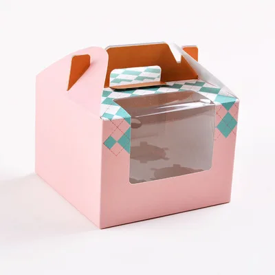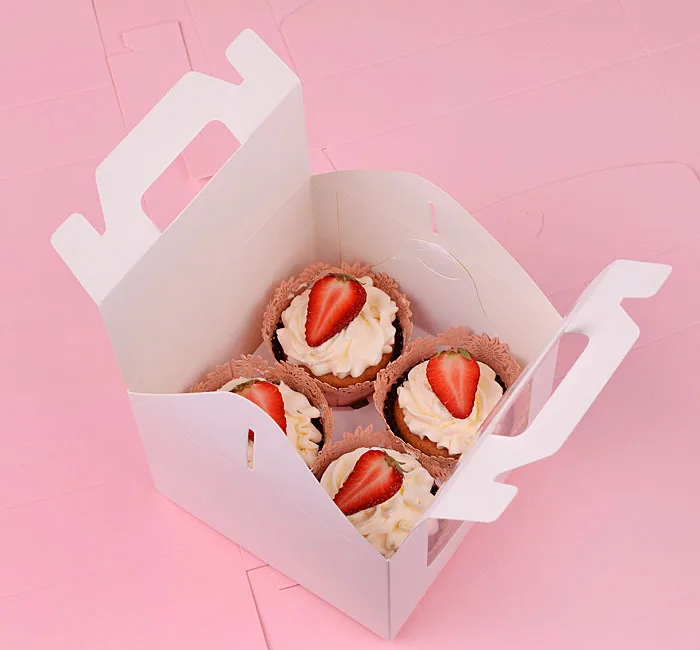 Best 20 SET of Pink check 4 holes cupcake box with handle