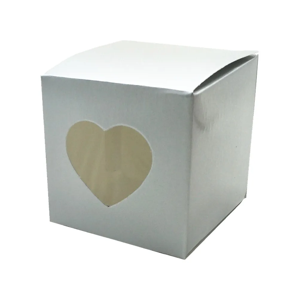 5x5x5cm Mini Coloful Square Kraft Paper Package Box with Heart Window Foldable Gifts Display Carton
