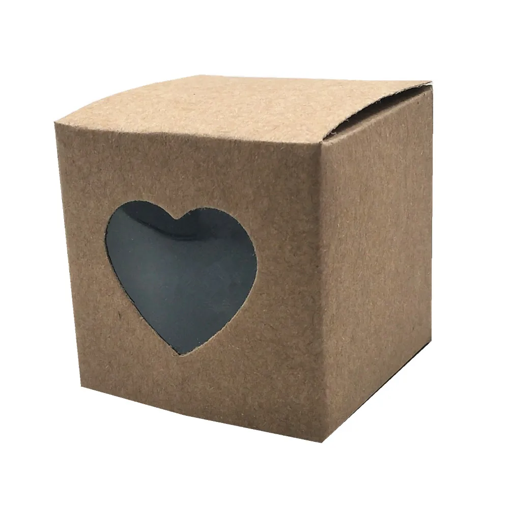 HIGH QUALITY 5x5x5cm Mini Coloful Square Kraft Paper Package Box with Heart Window Foldable Gifts Display Carton