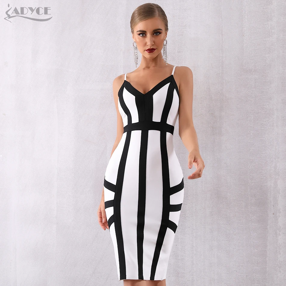 HIGH QUALITY Adyce 2019 New Summer Women Bodycon Bandage Dress Vestido Elegant White Spaghetti Strap Striped Clu