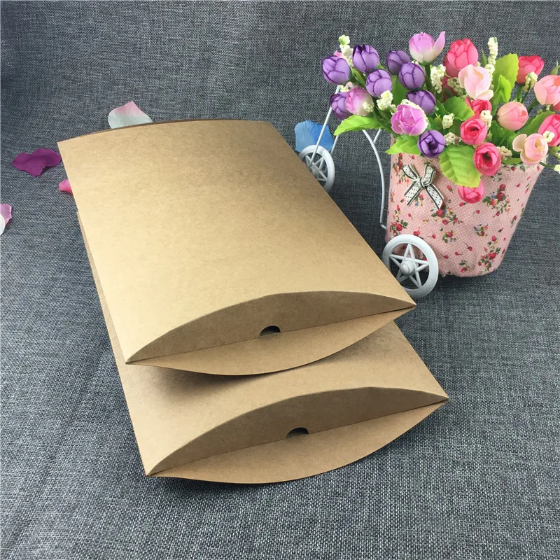 12Pcs/Lot 30x21x3.5cm Brown Paper Kraft Pillow Pouch Carrying Box Large Size For Display Decoration