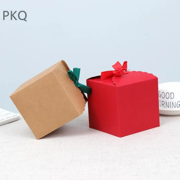 ORIGINAL 20pcs 11*11*11cm Kraft Paper Wedding Candy Box Brown Square Cardboard Boxes Party Cookie Packaging