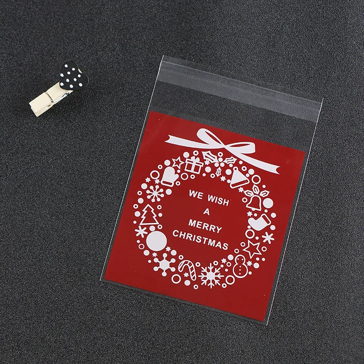 TOP 500PCS Merry Christmas Party Cellophane Cookie Bags Biscuit Plastic Bag Candy Packing OPP Bag with