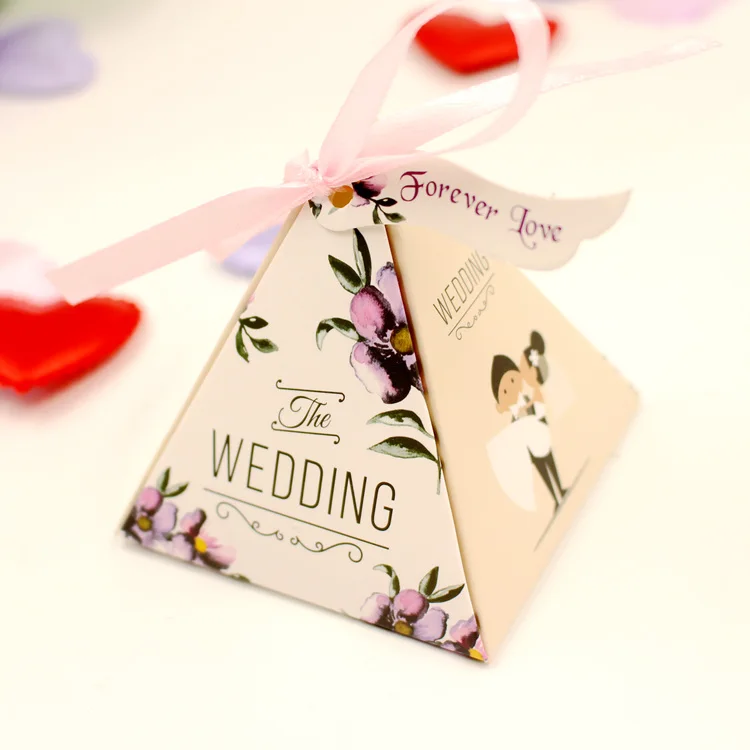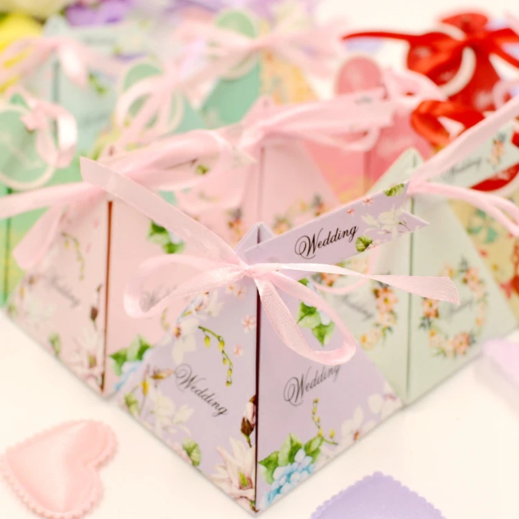 HIGH QUALITY Creative Promotional Exquisite Triangular sweet Camellia rose Flower Wedding Favors Candy Boxes Cho