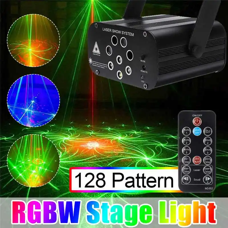 128 Pattern Laser Projector Remote/Sound Actived LED Disco Light RGB DJ Party Light Christmas Lamp