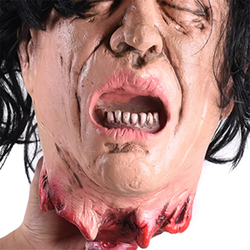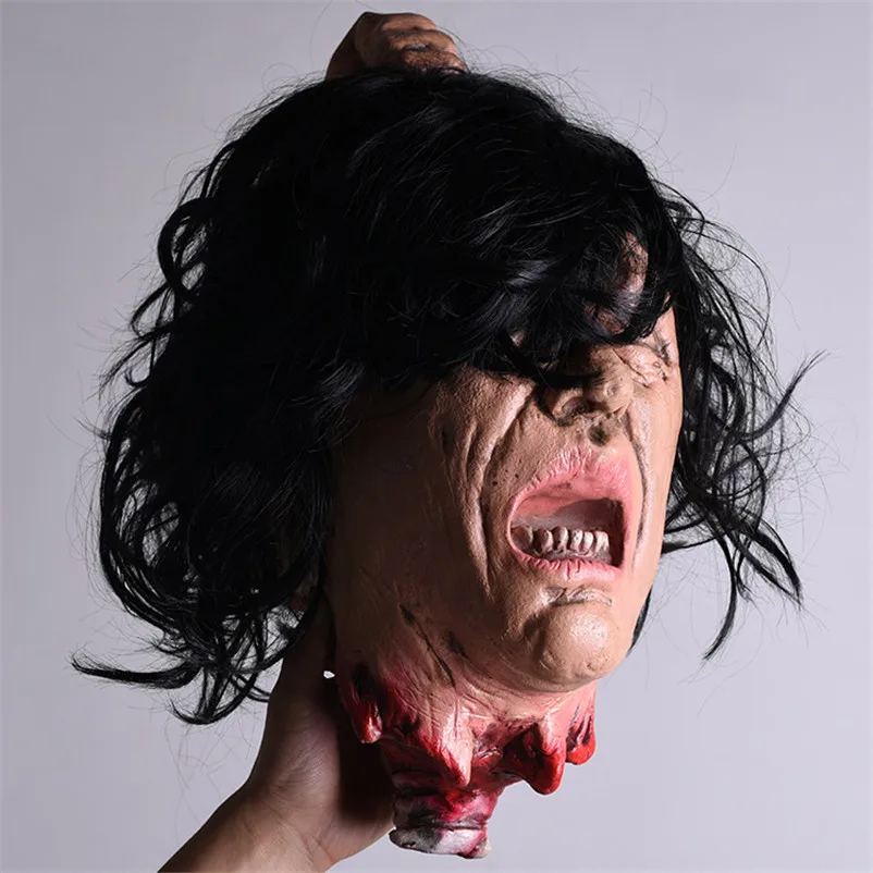 Simulation Long Black Hair Ghost Head Halloween Horror Decorations Ghost Decapitated Head Haunted H