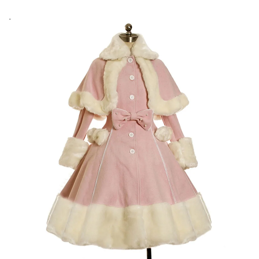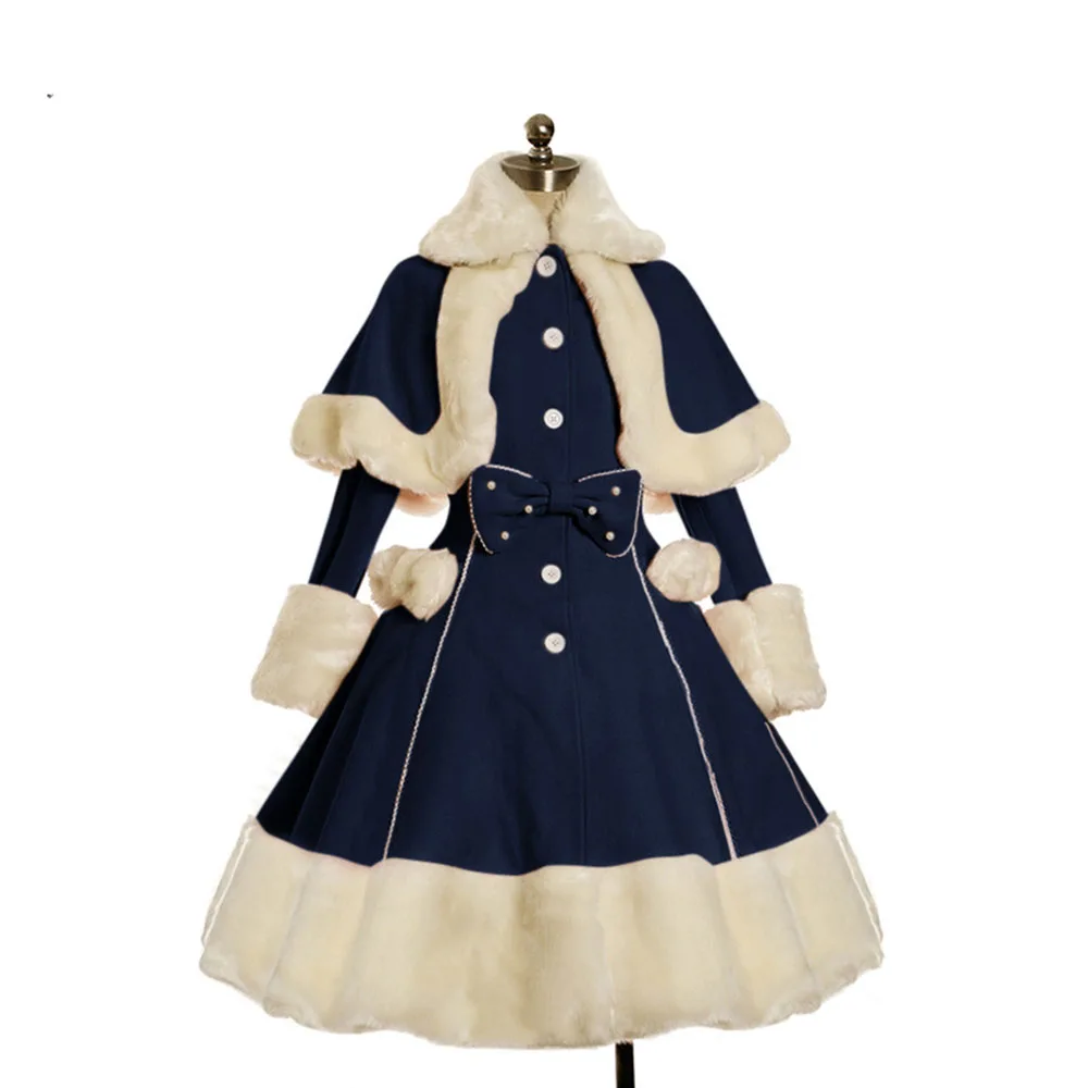 Sweet Lolita Dresses Suit Fur Collar Shawl & Bow Fitted Dress Single breasted Gothic Lady Party Ban