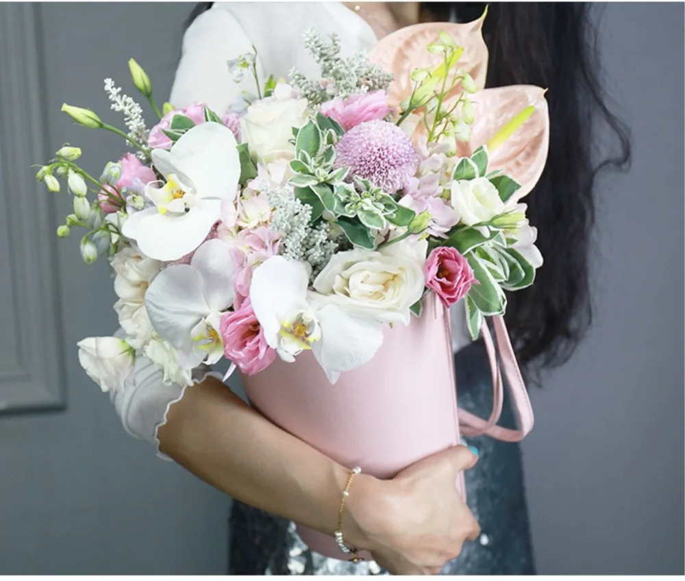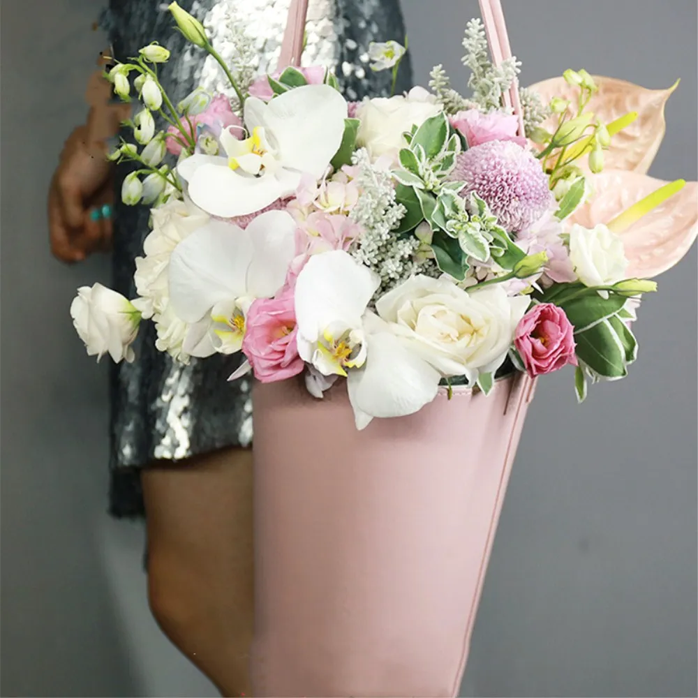 High Quality Vintage Leather Gift Box With Handle Flower Arrangement Floral Bouquet Bucket Set of 2